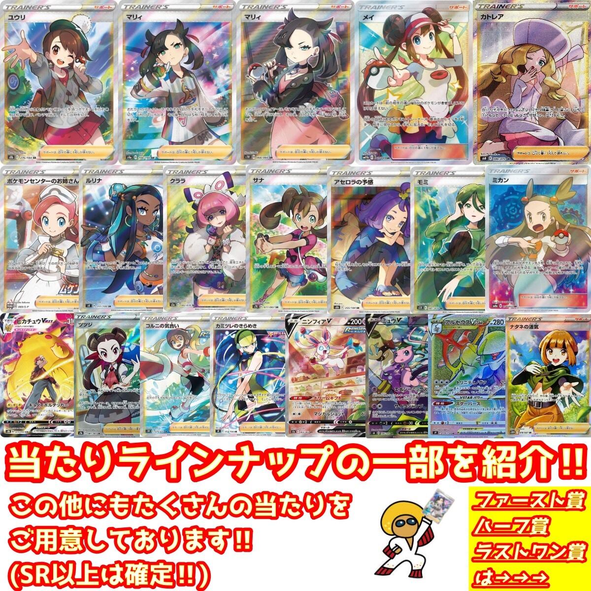 その他中当たりや小当たりもたくさんご用意しております。その一部を画像に載せておりますので購入の際のご参考にしてみてください。最低でもSR以上は確定となります。