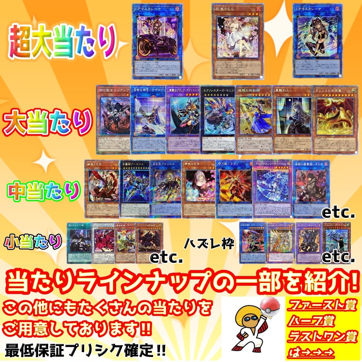 その他にもプリシクや大人気カードなどの中当たりや小当たりもたくさんご用意しております。
