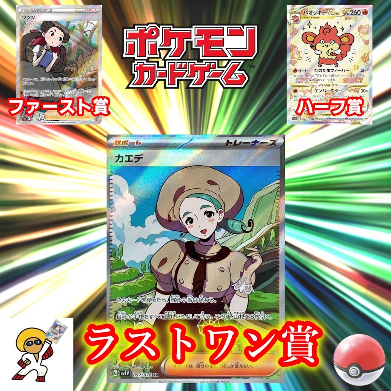 ファースト賞等 各賞を当てていただいた方はレビューかTwitterもしくは両方でご報告いただけますと幸いです。当たり枠を引き当てた方にも同様にお願いしたいのですが、超大当たり枠(画像2枚目参照)については他の購入者様の開封の楽しみを損なう可能性がございますのでオリパ完売後のご報告をお願いしております。